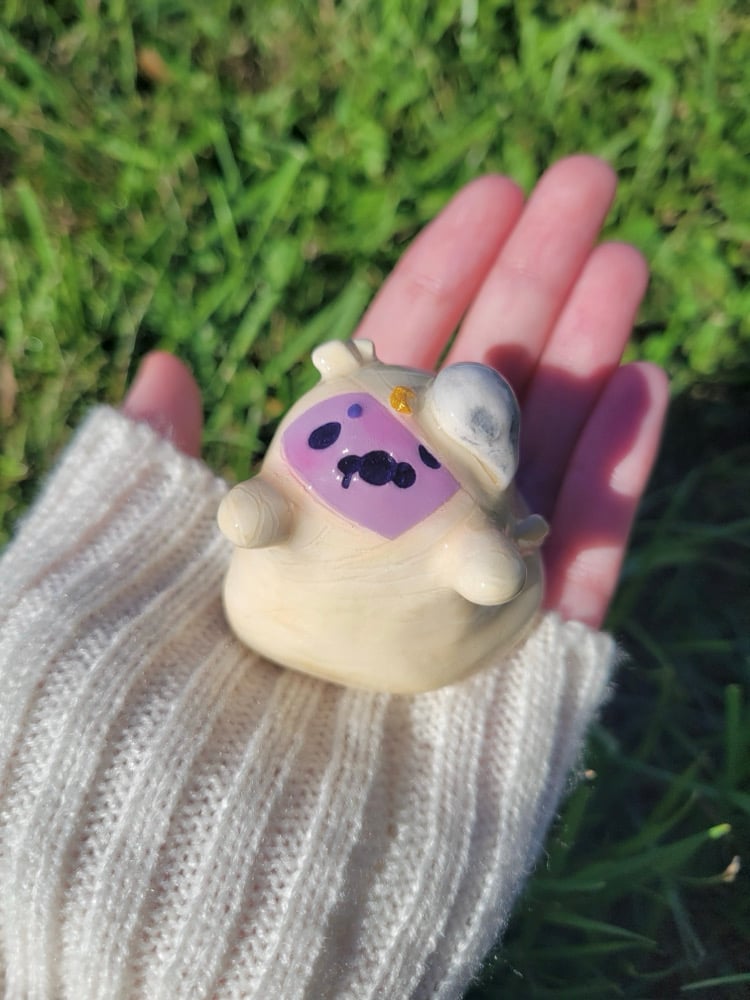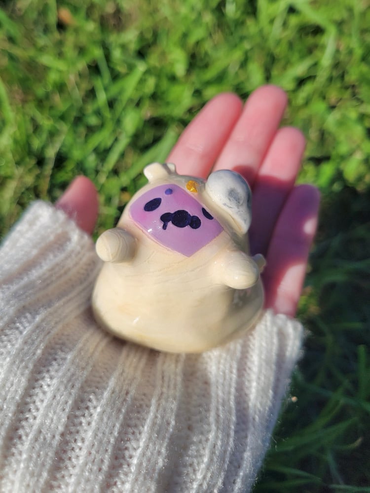 This silly little friend is made with clay and sealed with uv resin.